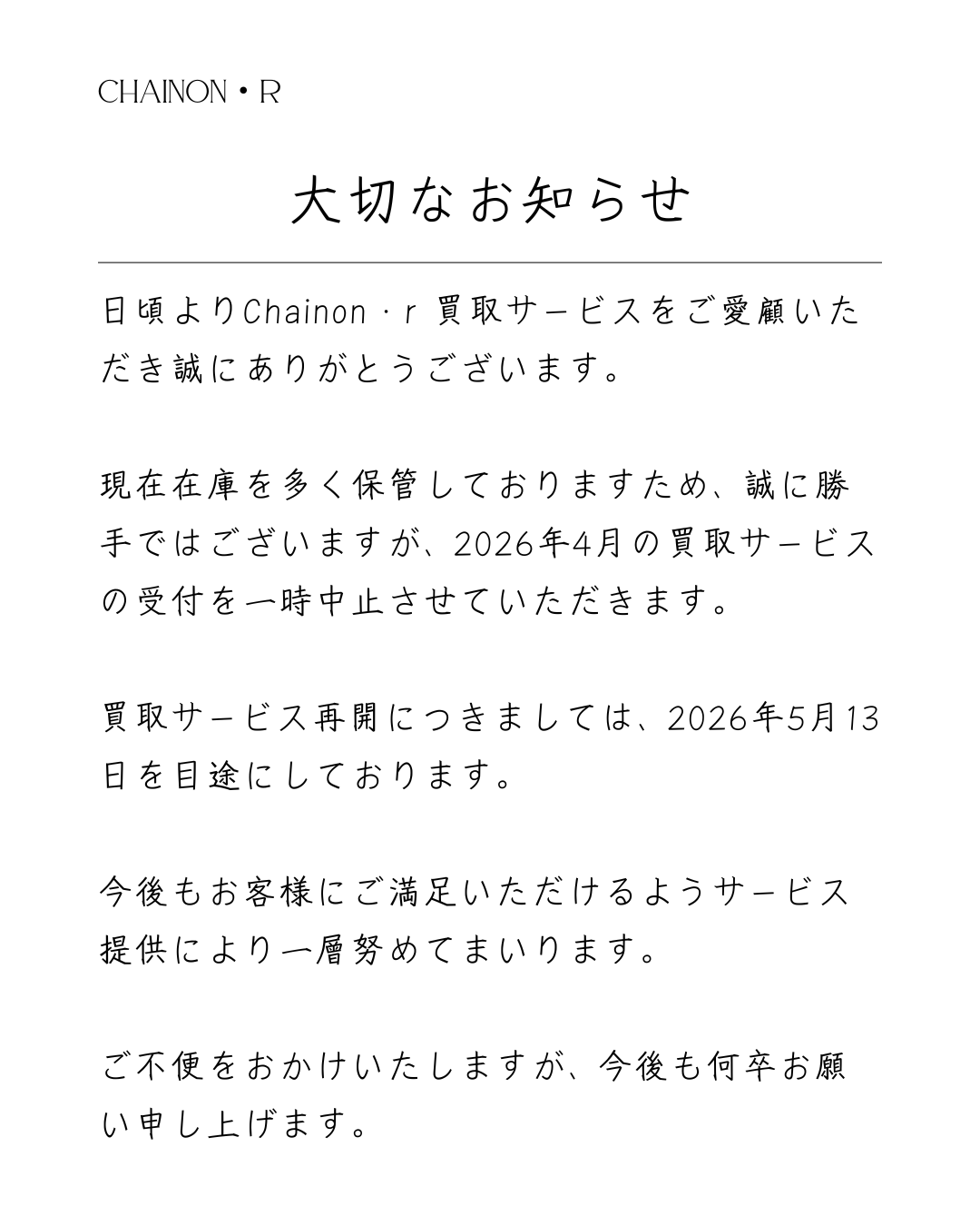 また、日頃よりChainon・rの買取サービスをご利用いただき、心より御礼申し上げます。